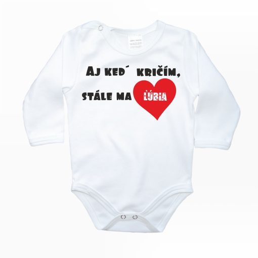 Originálne detské body s dlhým rukávom, veľmi príjemné na dotyk. Kojenecké body sú vyrobené na Slovensku zo 100 % bavlny (210-220 g/m2}. Body s nápisom majú zapínanie na cvoky na ramienku bábätka a medzi nožičkami. Veľkosť 50 – 98